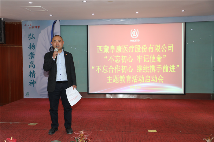 為全面貫徹落實黨中央、區(qū)黨委“兩新”工委、區(qū)工商聯(lián)關(guān)于第二批“不忘初心、牢記使命”主題教育工作要求,2019年9月26日下午18:00,西藏阜康醫(yī)療股份有限公司黨委在阜康婦產(chǎn)兒童院區(qū)四樓會議室組織召開“不忘初心 牢記使命”和“不忘合作初心 繼續(xù)攜手前進”主題教育活動啟動會。